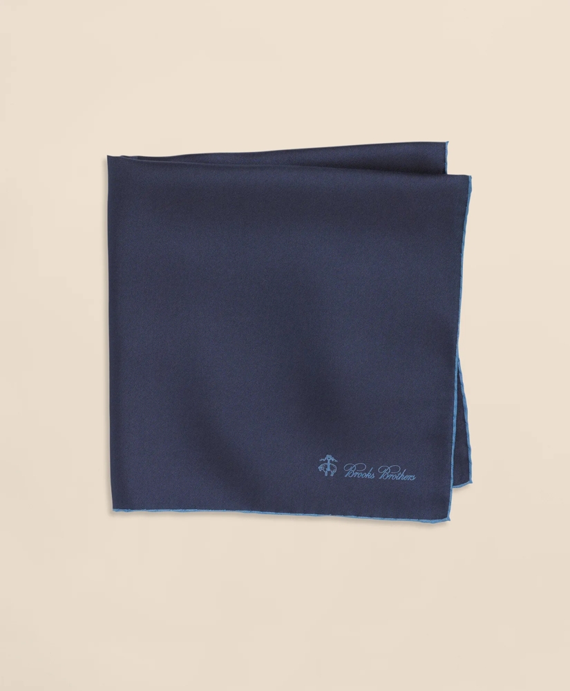 Pure silk printed with contrasting hand rolled border. Brooks Brothers script and Signature Fleece logo.
