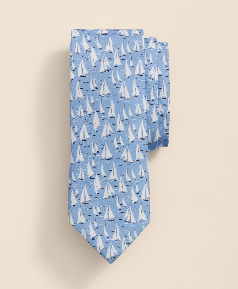 Made from luxe lustrous silk woven in Italy, this whimsical sailboat-patterned tie is perfect for your seasonal style.