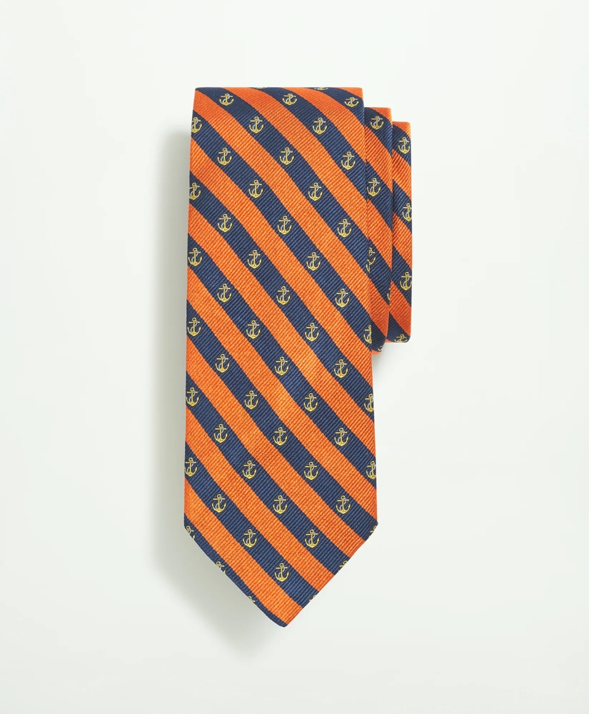 Italian-spun silk woven in a twill pattern showcases traditional stripes with an anchor motif in this tie.
