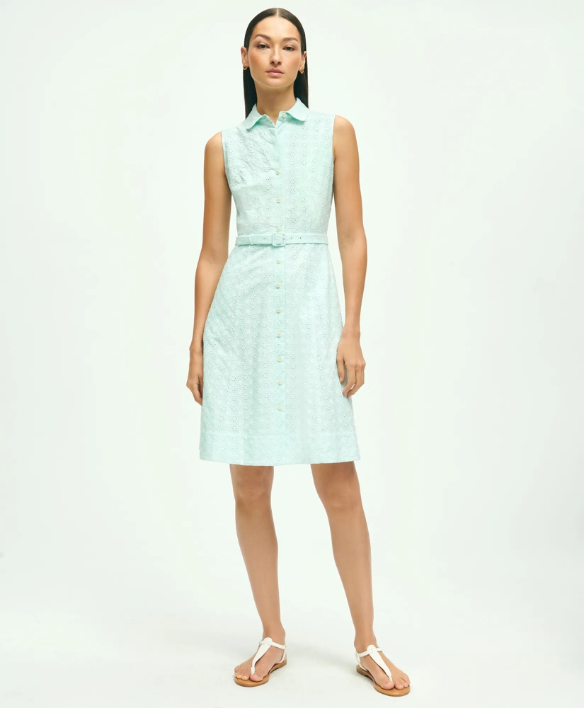 Sleeveless Cotton Eyelet Belted Shirt Dress