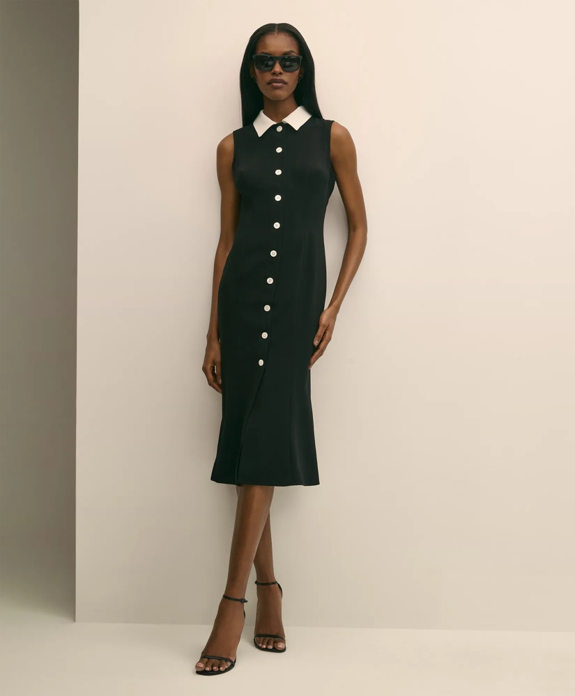 Update your little black dress collection with this number featuring a contrast collar and lustrous, light-catching buttons. Pair with flats in transitional weather and tights when it gets cooler. You'll reach for it season after season.