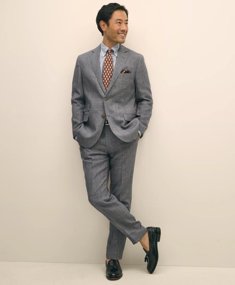 Slim Fit Check Linen Suit Pants