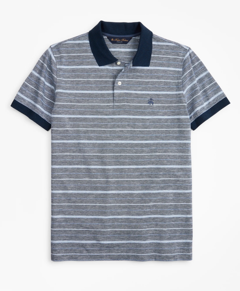 Slim Fit Cotton and Linen Stripe Polo Shirt