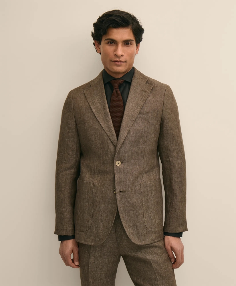 Define your seasonal style in our new suit jacket that boasts pure linen woven by Italy's lauded Leomaster mill. We finished it with a pure cotton lining for added comfort and classic pick stitching for a nod to quality craftsmanship. Pair with our matching suit pants and vest for a full three-piece look.