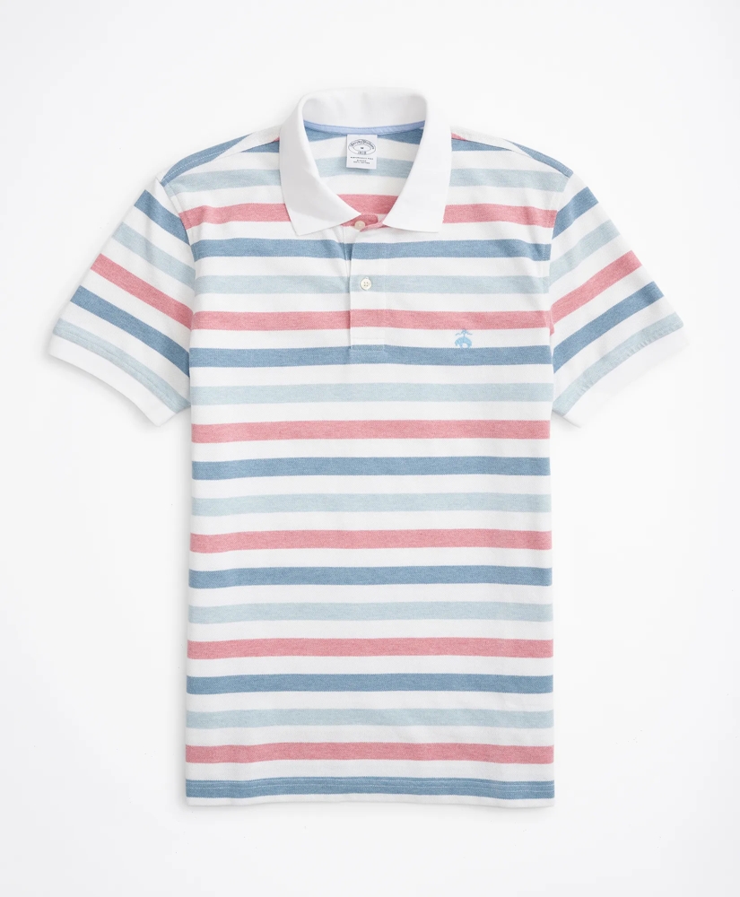 Designed with lasting comfort and style in mind, our striped cotton pique polos are finished with a signature performance treatment to enhance shape retention and resistance to shrinking, fading and pilling. This wardrobe staple features our signature fleece logo embroidered at the left chest, a rib-knit point collar, and a button half-placket.
