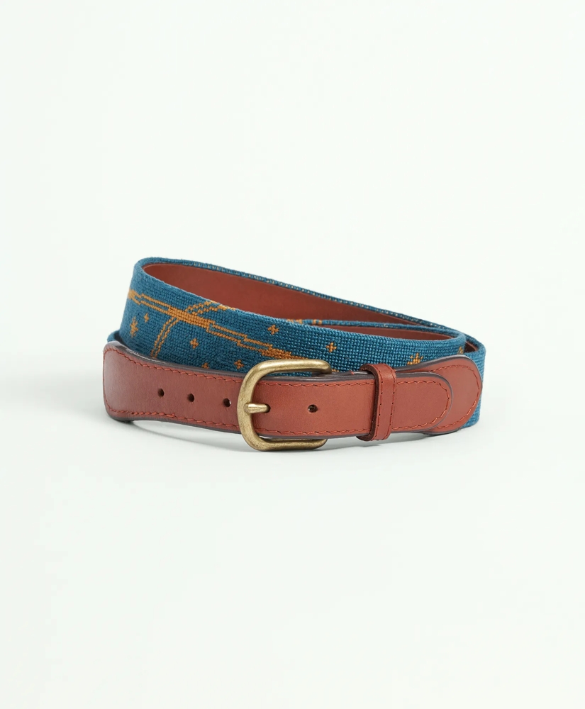 Everyday style is elevated with Smathers & Branson handstitched belt made from pure cotton and genuine Italian-tanned leather featuring solid brass buckle.