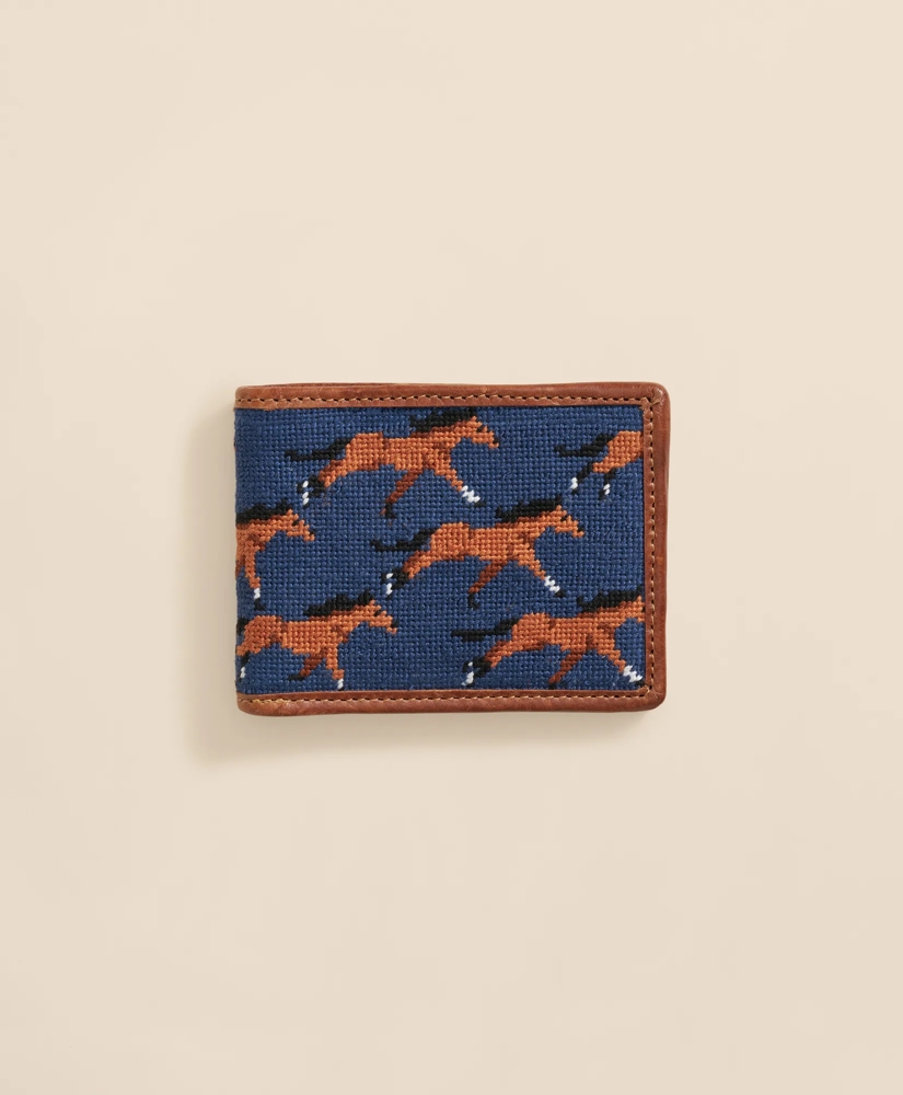 Crafted by the American brand Smathers & Branson, our needlepoint wallet features English leather tanned in Italy and a whimsical horse motif. It's the perfect formula: great craftsmanship yields great results. We think you'll agree as your wallet breaks in and becomes something you treasure over the years.