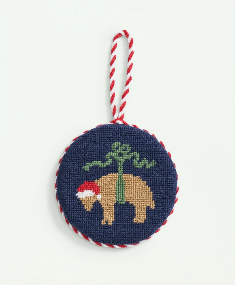 Decorate your holiday season with this Smathers & Branson hand-stitched needlepoint ornament accented by a braided rope cord and flannel backing, all wrapped around a structured, padded base and featuring our Golden Fleece®, on everyone's classic style wish list.