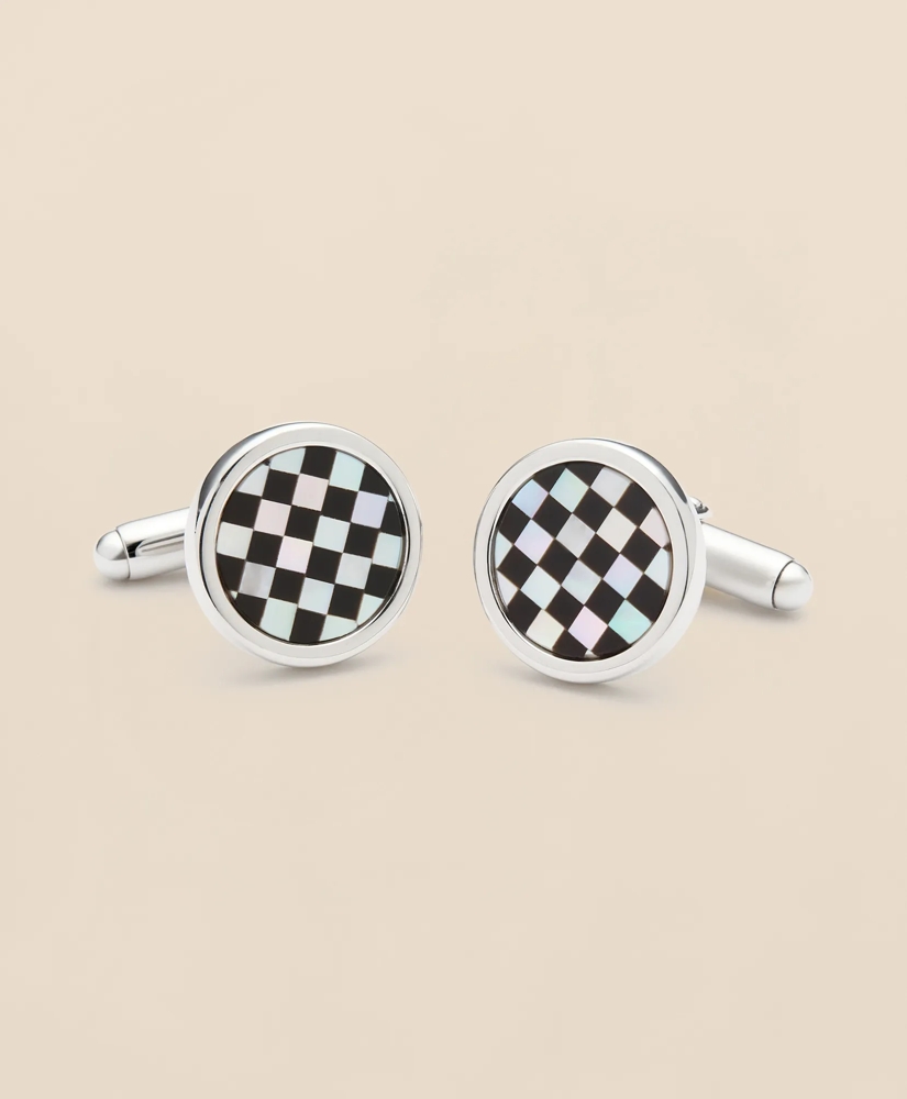 Sterling Silver Rhodium-Plated Checkerboard Cufflinks