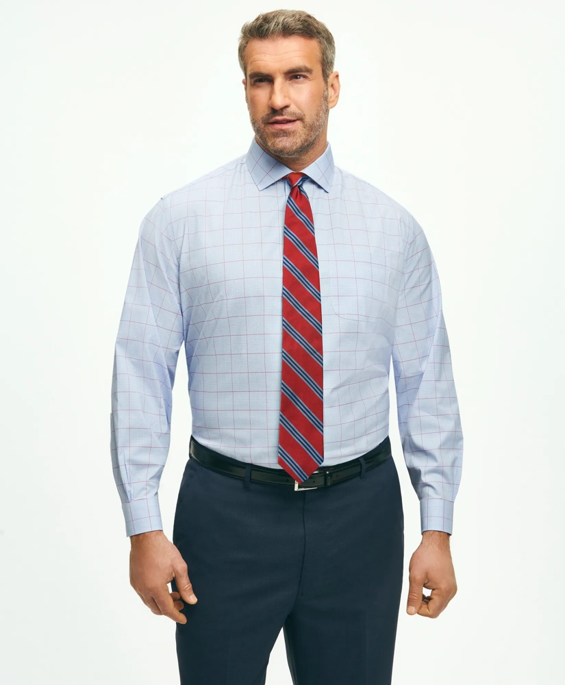 Stretch Big & Tall Supima® Cotton Non-Iron Poplin English Spread Collar, Glen Plaid Dress Shirt