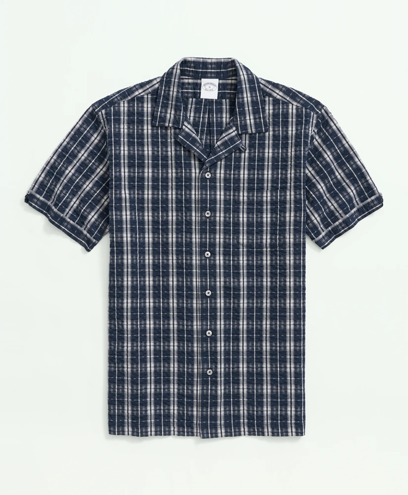 Stretch Cotton Camp Collar, Seersucker Short-Sleeve Sport Shirt