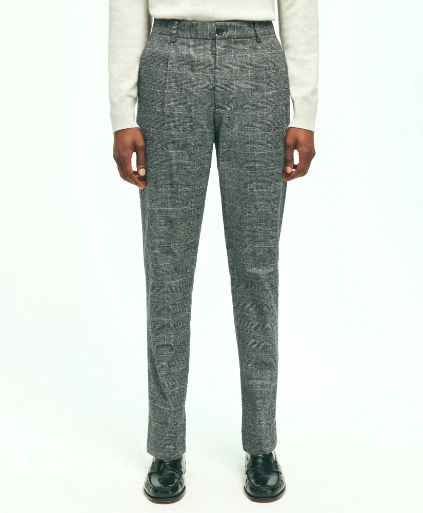 Stretch Cotton Checked Flannel Pleat-Front Pants