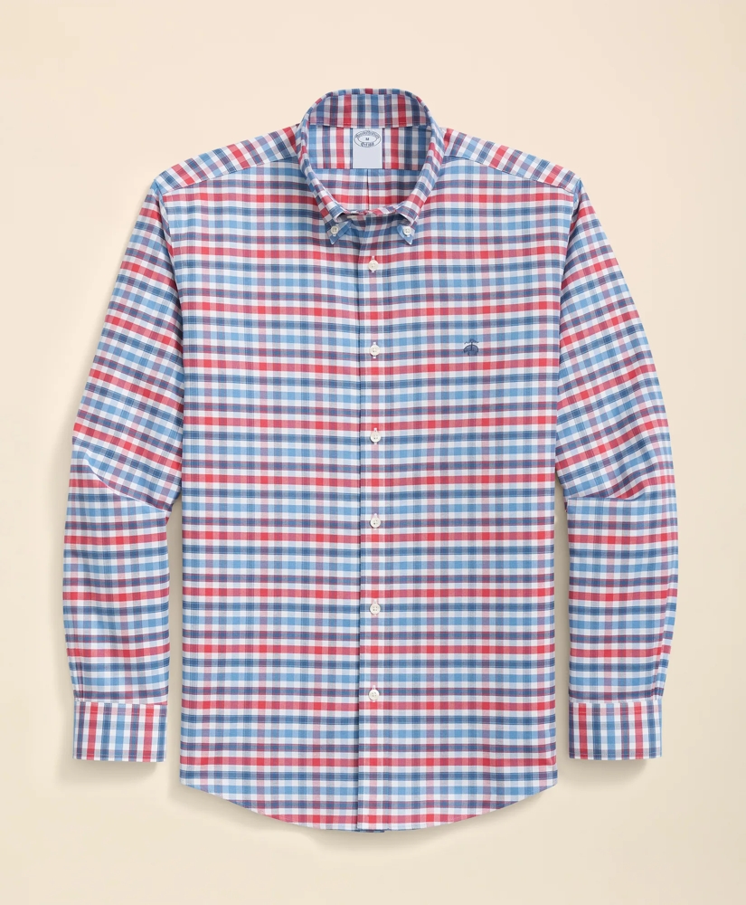 Stretch Cotton Non-Iron Oxford Polo Button Down Collar, Bold Check Shirt