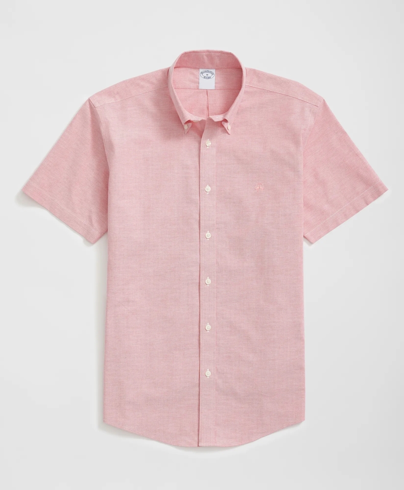 Stretch Cotton Non-Iron Oxford Polo Button Down Collar, Short-Sleeve Shirt
