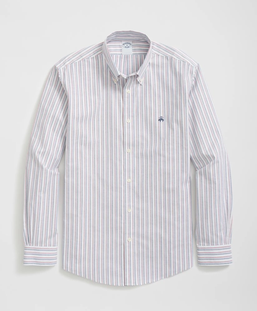 Stretch Cotton Non-Iron Oxford Polo Button Down Collar, Triple Stripe Shirt