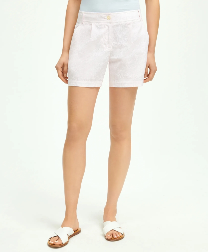 Stretch Cotton Pleated Seersucker Shorts
