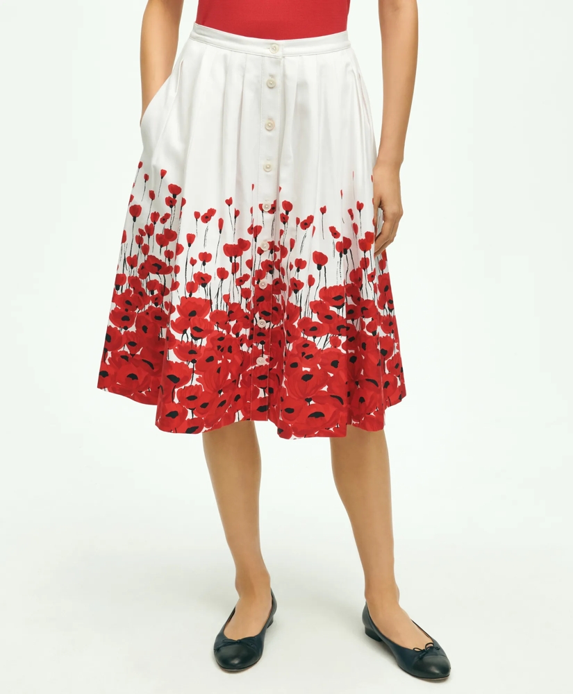 Stretch Cotton Poppy Print Flare Skirt
