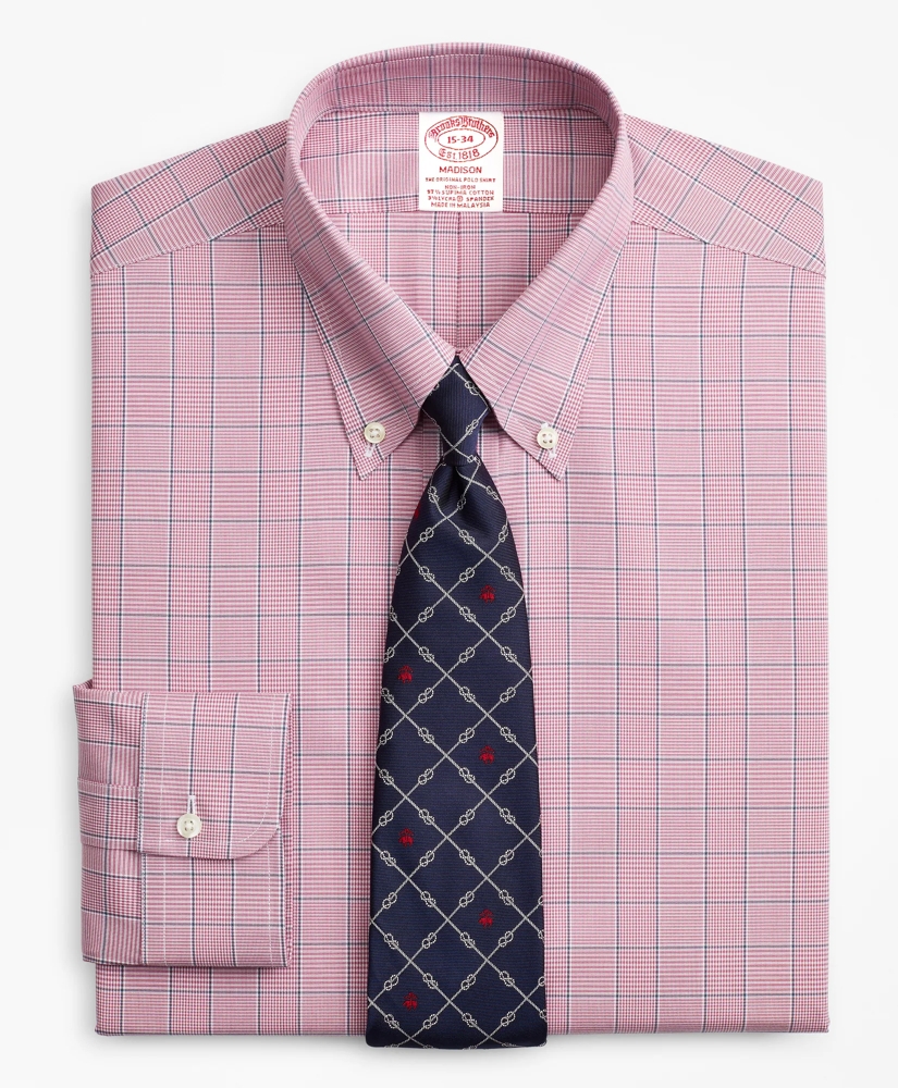 Stretch Madison Relaxed-Fit Dress Shirt, Non-Iron Pinpoint Button-Down Collar Glen Plaid