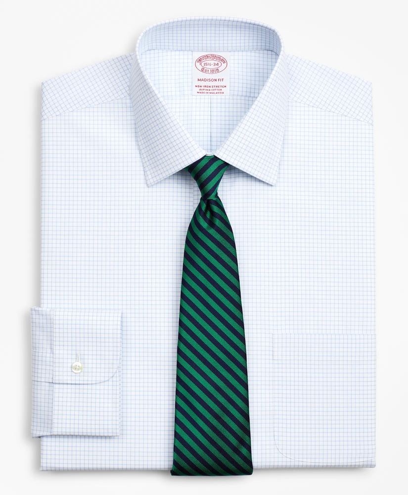 Stretch Madison Relaxed-Fit Dress Shirt, Non-Iron Poplin Ainsley Collar Small Grid Check