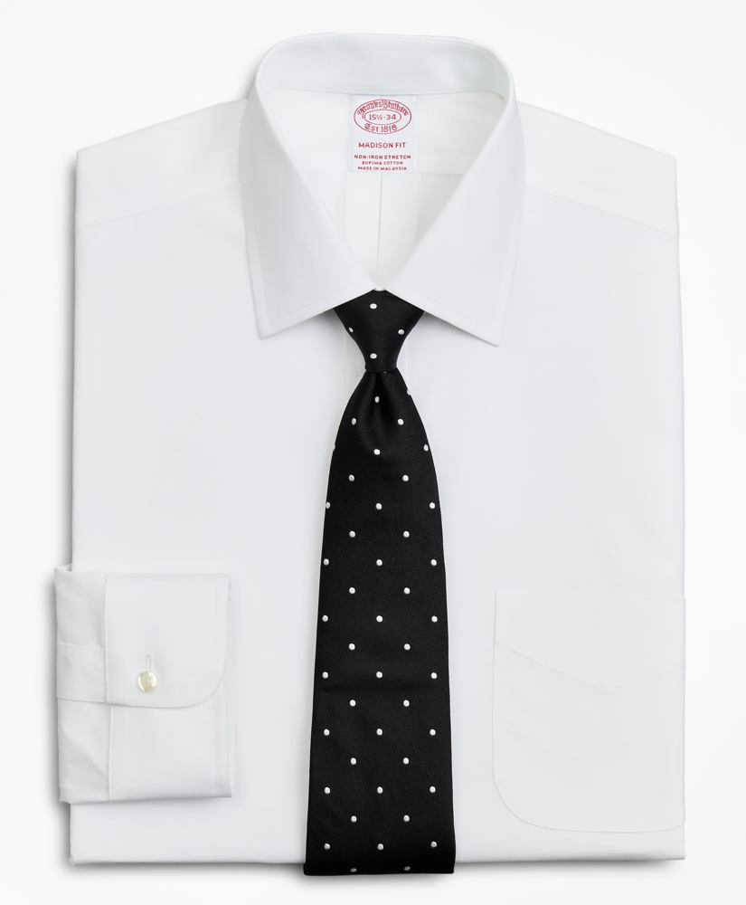 Stretch Madison Relaxed-Fit Dress Shirt, Non-Iron Poplin Ainsley Collar