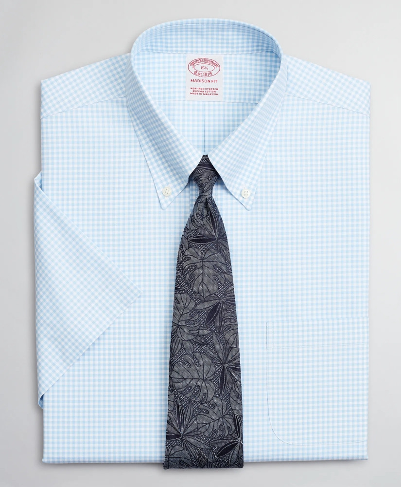 Stretch Madison Relaxed-Fit Dress Shirt, Non-Iron Poplin Short-Sleeve Gingham