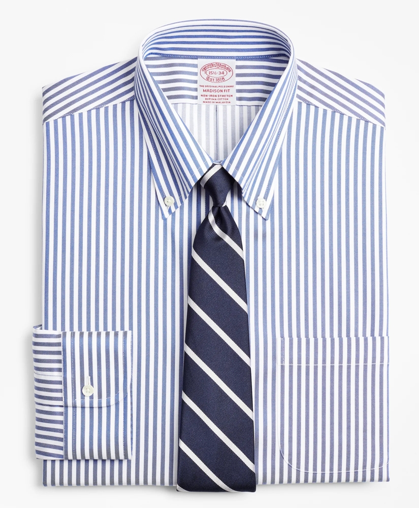 Stretch Madison Relaxed-Fit Dress Shirt, Non-Iron Twill Button-Down Collar Bold Stripe
