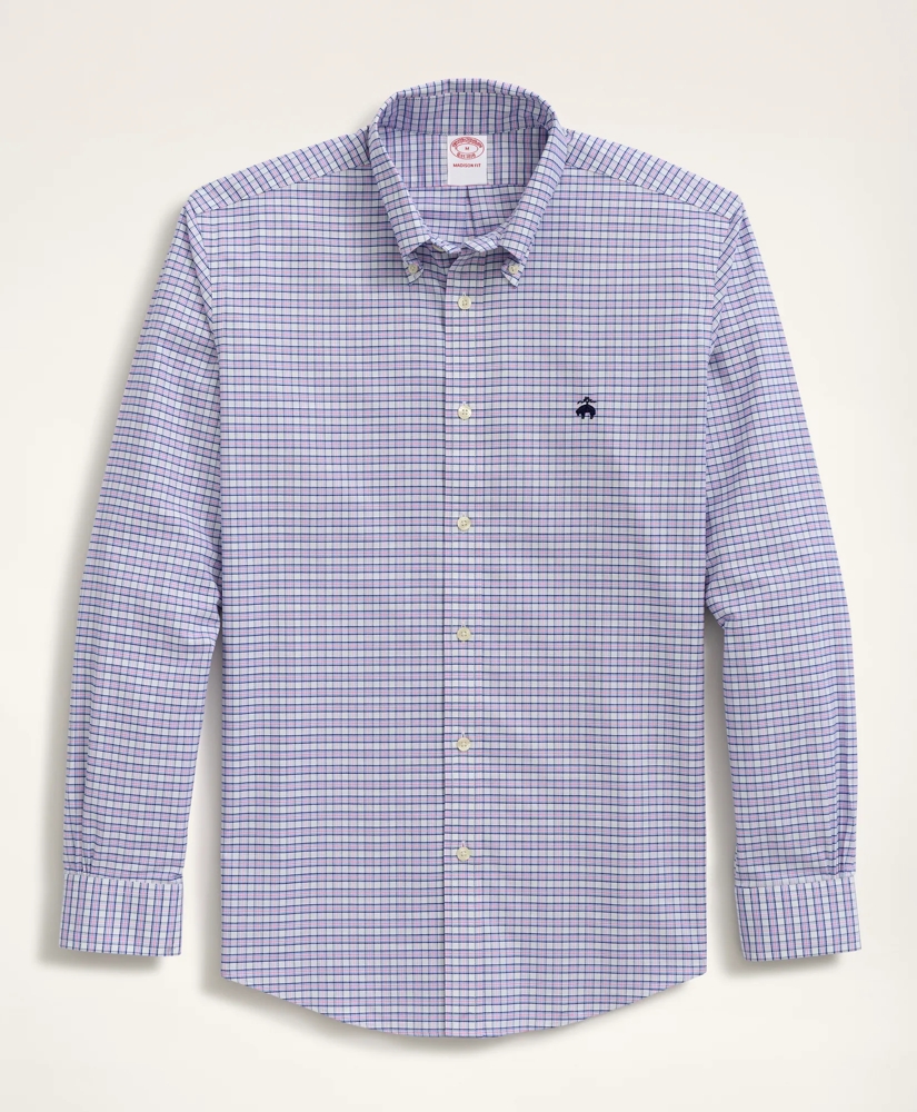 Our non-iron finish is iconic for a reason: a unique finish we've perfected over decades that keeps your shirt virtually wrinkle-free from morning to night for one of the easiest ways to stay sharp. The one and only Brooks Brothers button-down collar and our signature 6-Pleat Shirring® complete our update to timeless style.