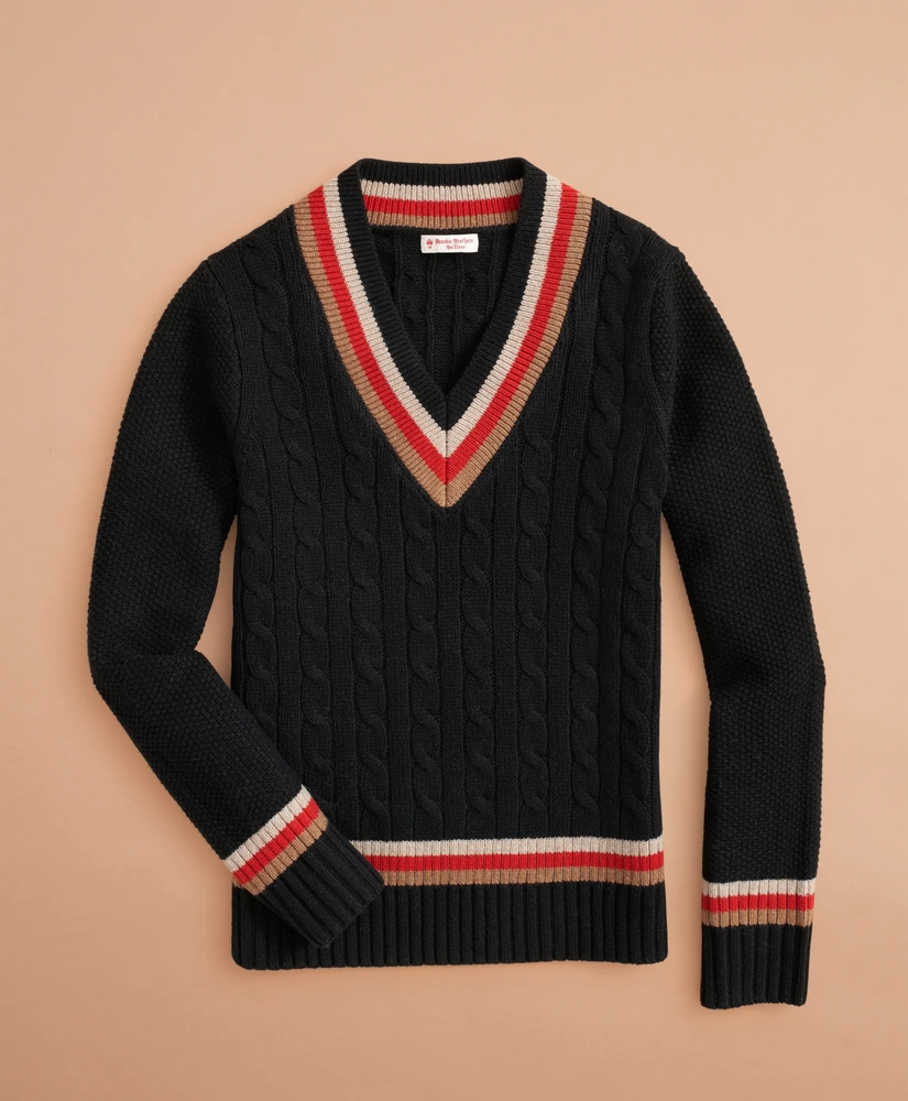 We've given the preppy-classic tennis sweater a cold-weather update in super-soft Italian merino wool with a hint of comfortable stretch. This essential layer features a V-neckline, bold stripes, and rib-knit banding at the cuffs and hem.