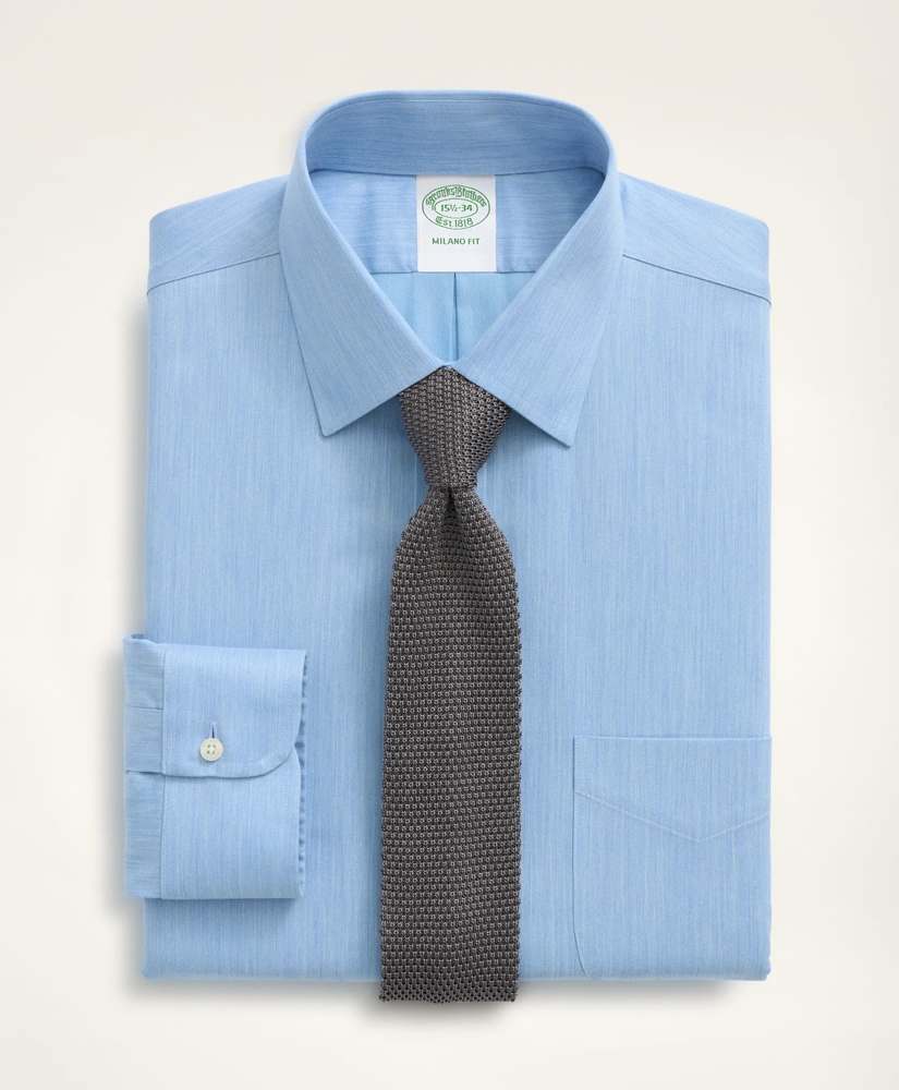 Stretch Milano Slim-Fit Dress Shirt, Non-Iron Herringbone Ainsley Collar