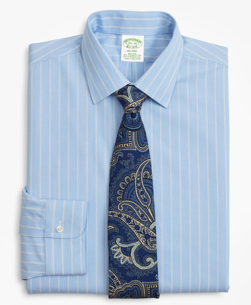 Stretch Milano Slim-Fit Dress Shirt, Non-Iron Pinstripe