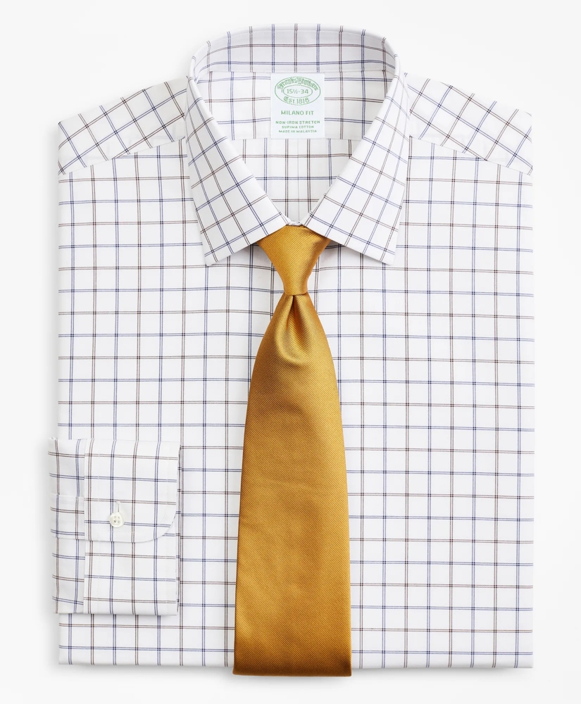 Stretch Milano Slim-Fit Dress Shirt, Non-Iron Poplin Ainsley Collar Double-Grid Check