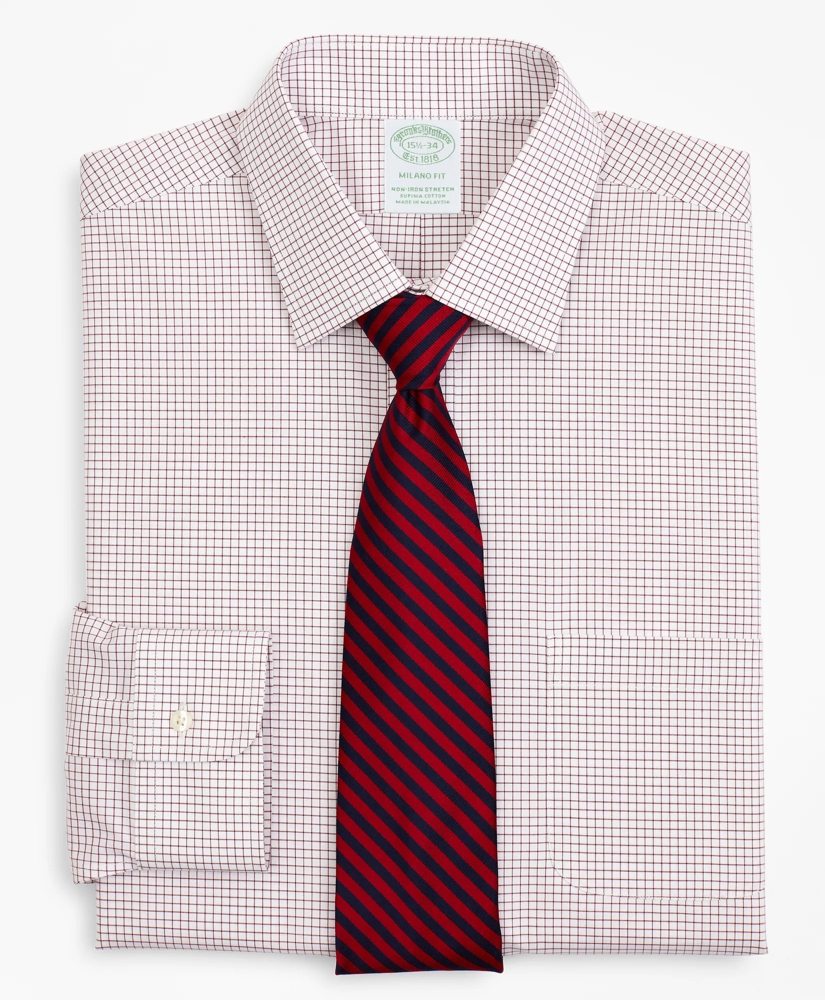 Stretch Milano Slim-Fit Dress Shirt, Non-Iron Poplin Ainsley Collar Small Grid Check