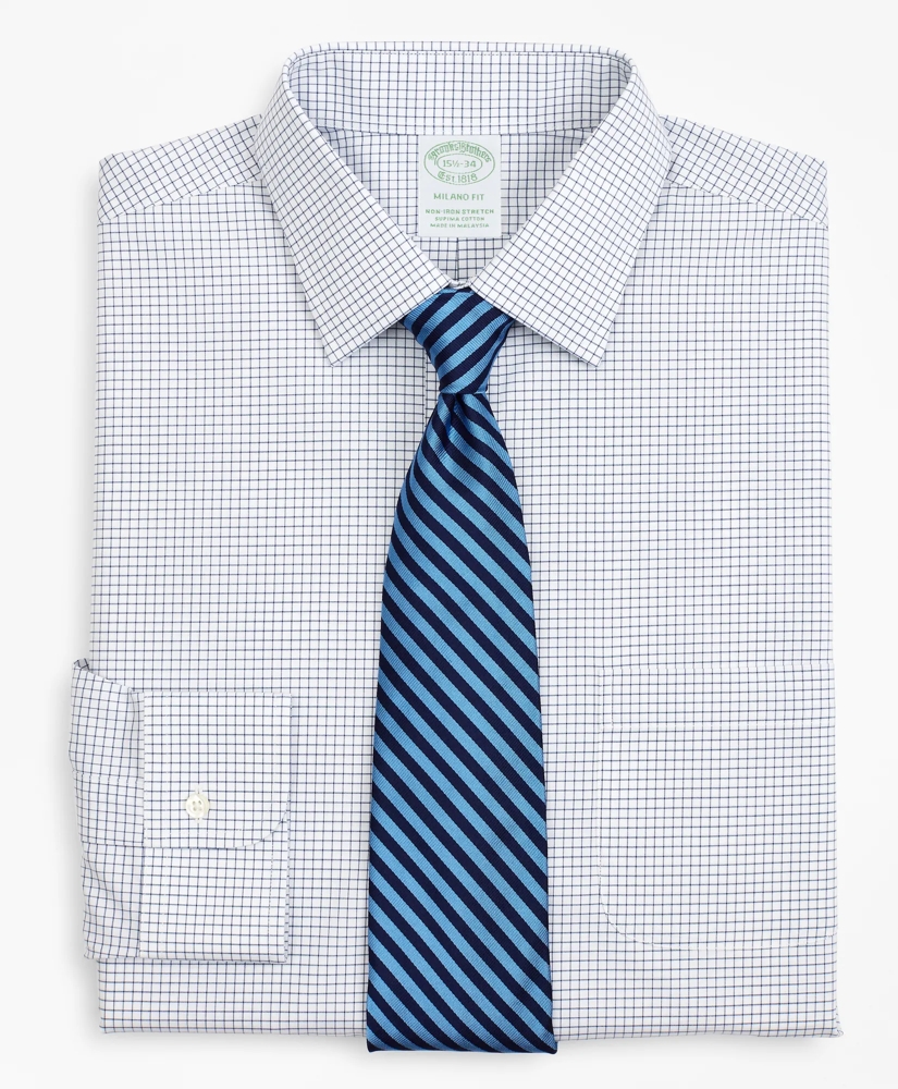 Stretch Milano Slim-Fit Dress Shirt, Non-Iron Poplin Ainsley Collar Small Grid Check