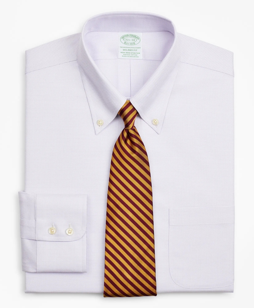 Stretch Milano Slim-Fit Dress Shirt, Non-Iron Twill Button-Down Collar Micro-Check