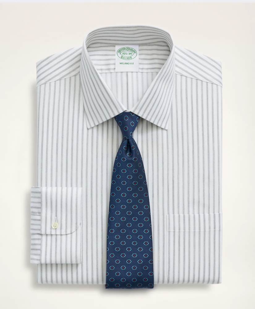 Stretch Milano Slim-Fit Dress Shirt, Non-Iron Twill Stripe Ainsley Collar