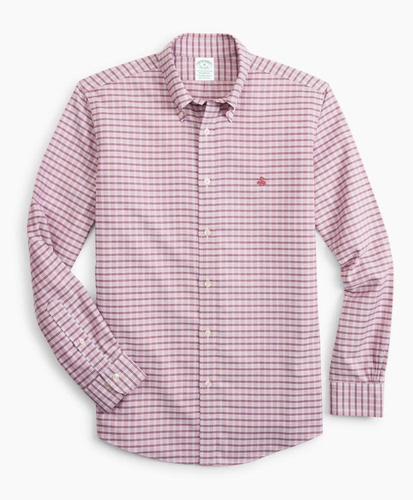 This sport shirt is crafted from stretch pinpoint woven from American-grown Supima® cotton and spandex. Specially treated to resist wrinkles. The button-down collar, a Brooks Brothers innovation, keeps you looking your best. Our signature 6-Pleat Shirring® at the barrel cuffs reinforces Brooks Brothers dedication to a well-made sport shirt. Additional features include our signature fleece logo at left chest. Machine wash according to care instructions for best performance. Imported.