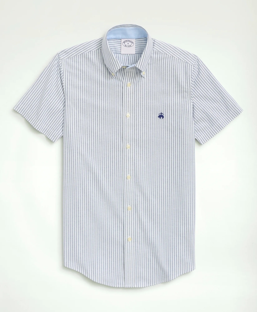 Stretch Non-Iron Oxford Button-Down Collar, Bengal Stripe Short- Sleeve Sport Shirt