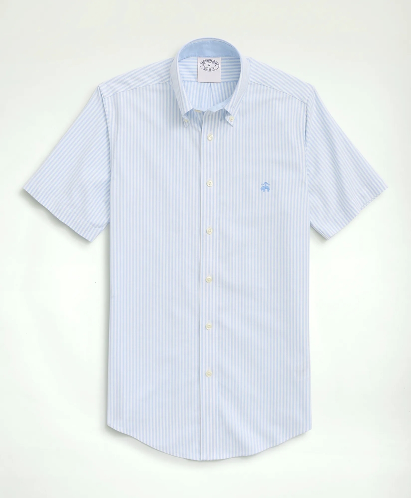 Stretch Non-Iron Oxford Button-Down Collar, Bengal Stripe Short- Sleeve Sport Shirt