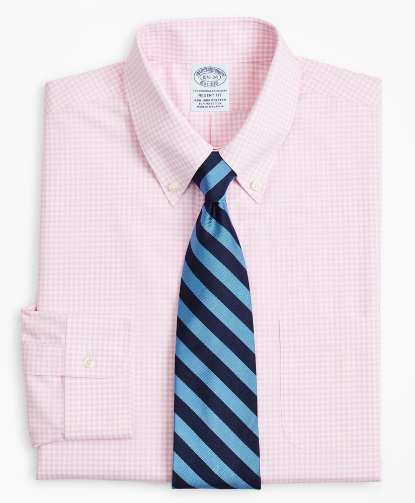 Stretch Regent Regular-Fit Dress Shirt, Non-Iron Poplin Button-Down Collar Gingham