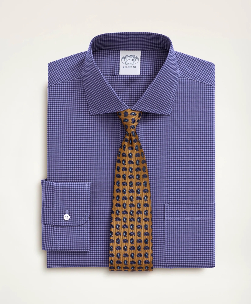 Stretch Regent Regular-Fit Dress Shirt, Non-Iron Poplin English Spread Collar Gingham