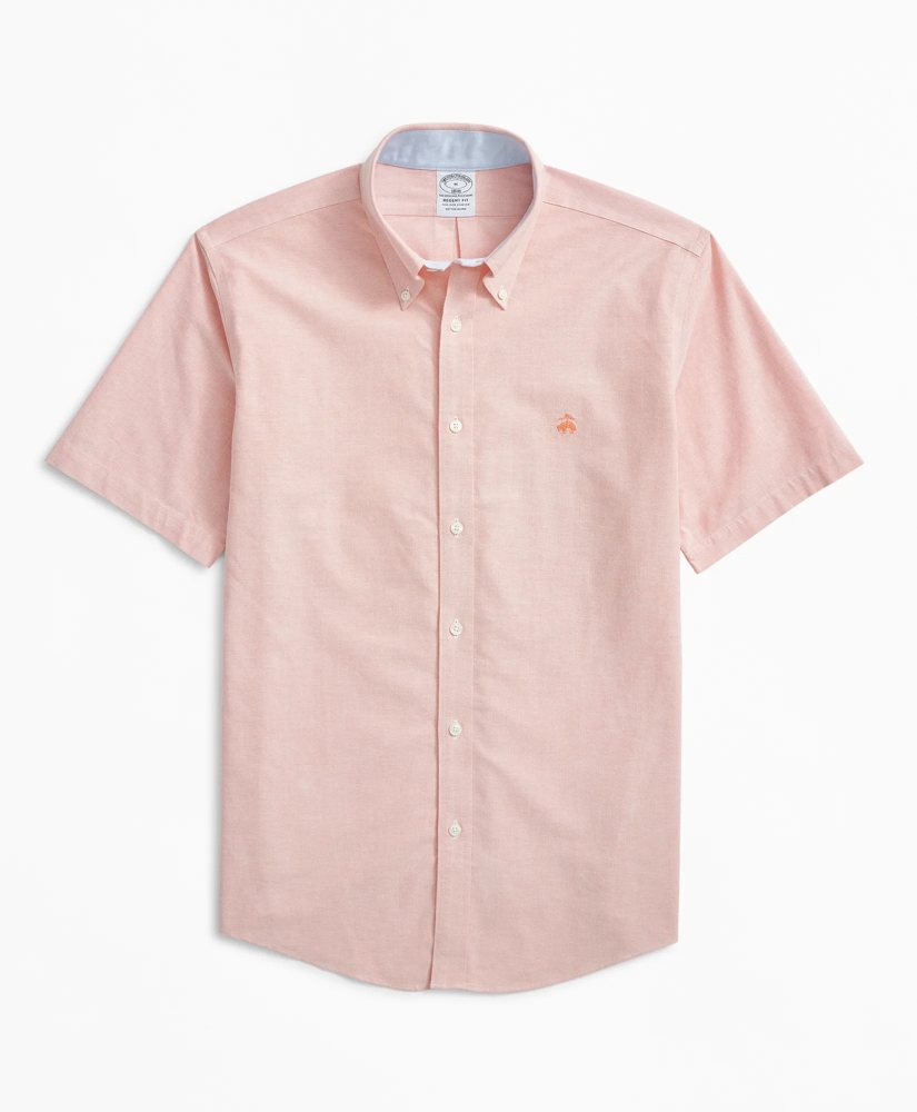 A true classic. Crafted from cotton oxford cloth woven with a touch of comfortable stretch, this essential sport shirt is specially treated to resist wrinkles. It features our iconic button-down collar, short sleeves, our fleece emblem embroidered at the chest, and contrasting trim inside the collar.