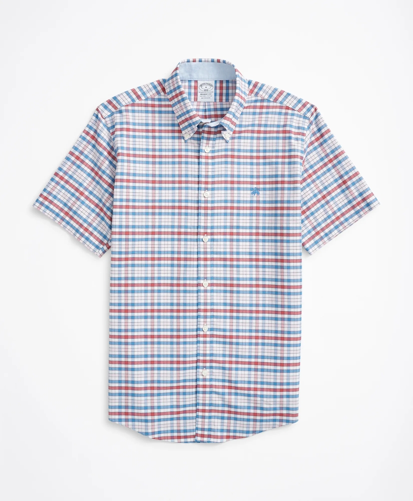 Stretch Regent Regular-Fit Short-Sleeve Sport Shirt, Non-Iron Plaid Oxford