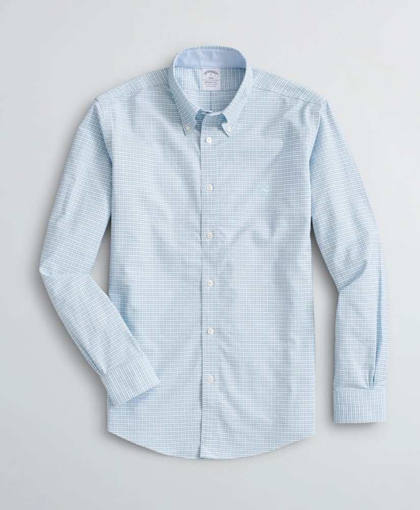 A true preppy classic. Crafted from cotton oxford cloth woven with a touch of comfortable stretch, this essential sport shirt is specially treated to resist wrinkles. Cast in timeless mini gingham, it features our iconic button-down collar, our signature 6-Pleat Shirring® at the barrel cuffs, our fleece emblem embroidered at the chest, and contrasting trim inside the collar and cuffs.