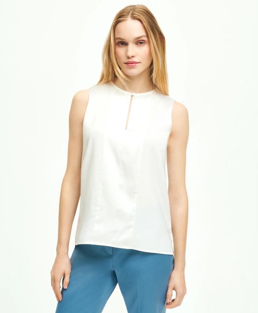 Stretch Silk Sleeveless Contrast Blouse