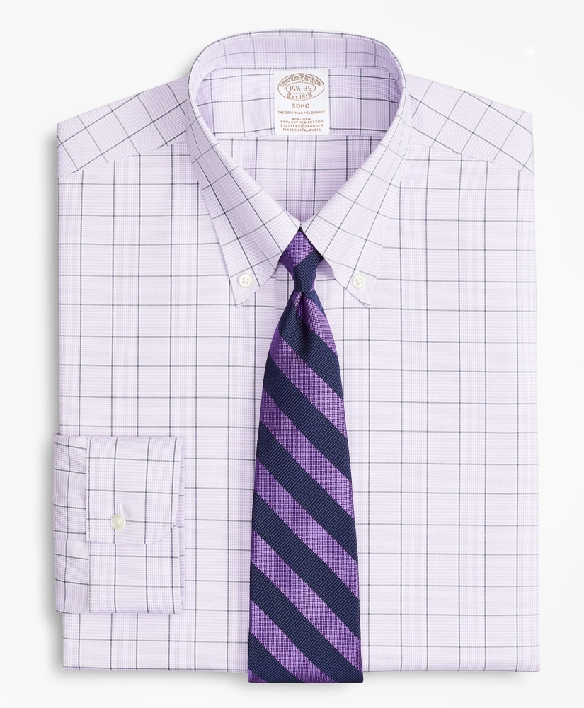 Stretch Soho Extra-Slim-Fit Dress Shirt, Non-Iron Pinpoint Button-Down Collar Glen Plaid