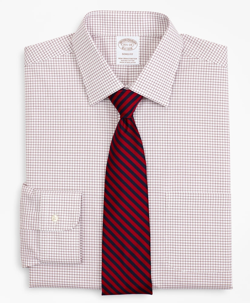 Stretch Soho Extra-Slim-Fit Dress Shirt, Non-Iron Poplin Ainsley Collar Small Grid Check