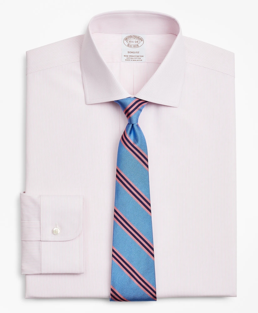Stretch Soho Extra-Slim-Fit Dress Shirt, Non-Iron Poplin English Collar Fine Stripe