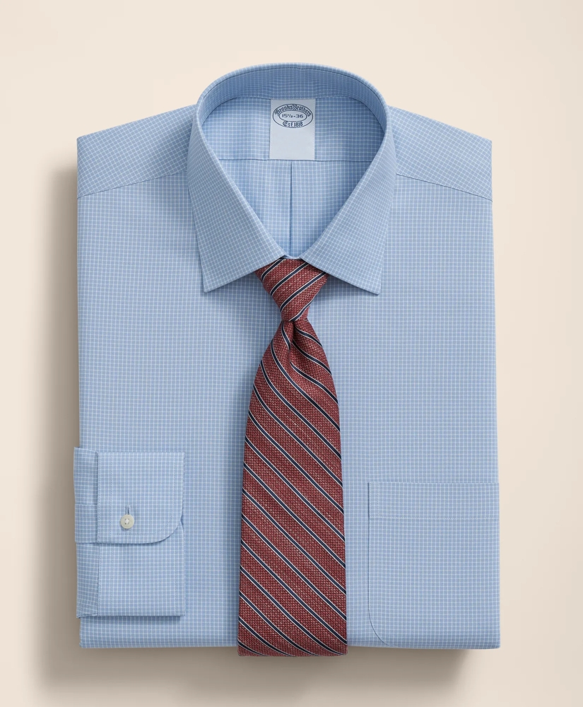 Stretch Supima® Cotton Non-Iron Pinpoint Oxford Ainsley Collar, Micro Grid Dress Shirt