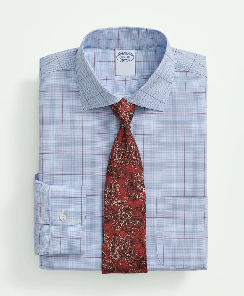 Stretch Supima® Cotton Non-Iron Poplin English Spread Collar, Glen Plaid Dress Shirt