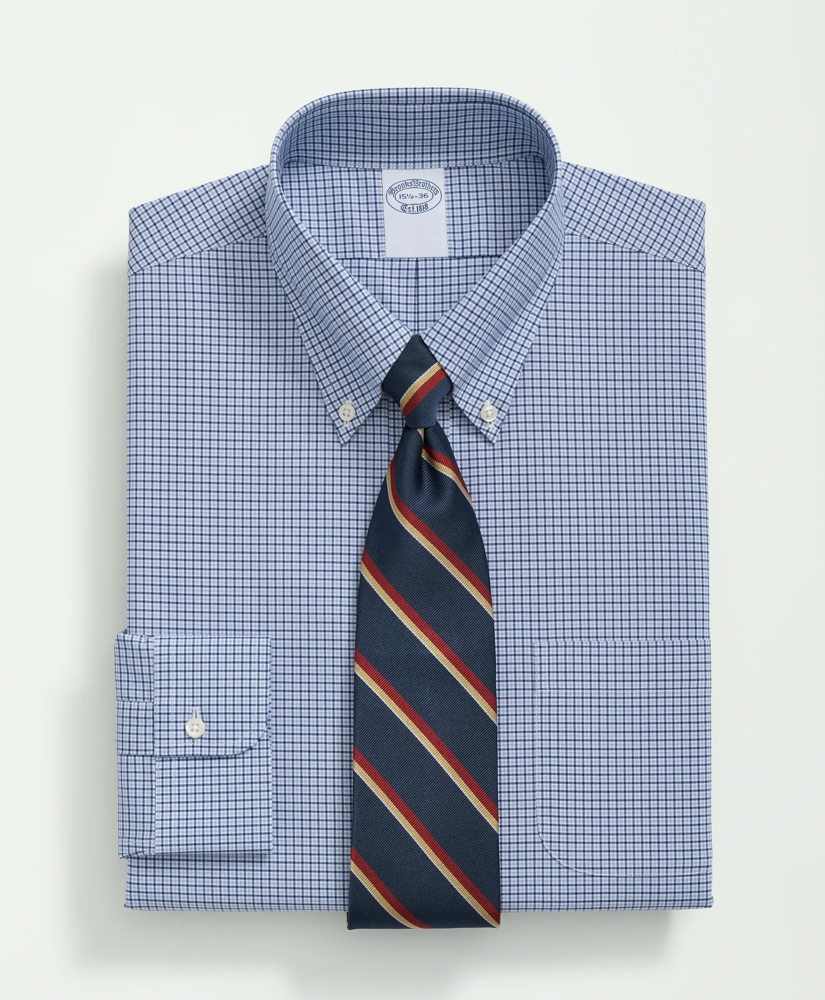 Stretch Supima® Cotton Non-Iron Poplin Polo Button-Down Collar, Checked Dress Shirt